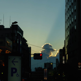 東京で見る空は、無駄に鋭角。 立ち上る雲も、左右をスッパリと切り取られてる。 太陽は、周りになーんにも無い所で …